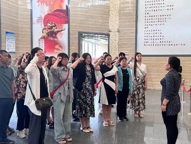 在崔月霞副经理的带领下,所有党员齐聚纪念馆前,面对党旗,庄严宣誓,向先烈致敬。每一句誓词都铿锵有力,掷地有声。党员们的声音在纪念馆里回荡,每一个字都体现了他们对党的无限忠诚和对理想信念的执着追求。